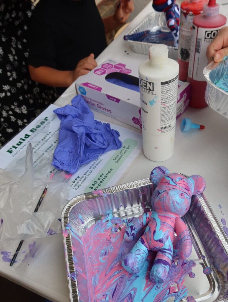 Create your own one-of-a-kind fluid bear in this hands-on art experience. Participants choose their colors and pour, drixxel, and swirl paint over a bear figurine to create beautiful patterns.