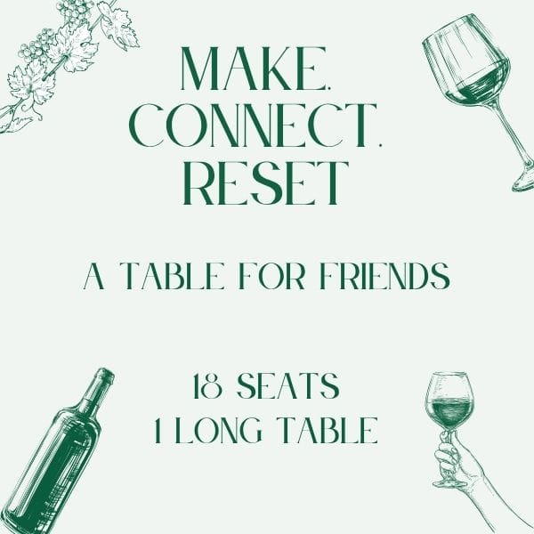 Make. Connect. Reset. is a creative gathering for people who crave real connection — not another happy hour, not a networking event, not small talk over a charcuterie board.