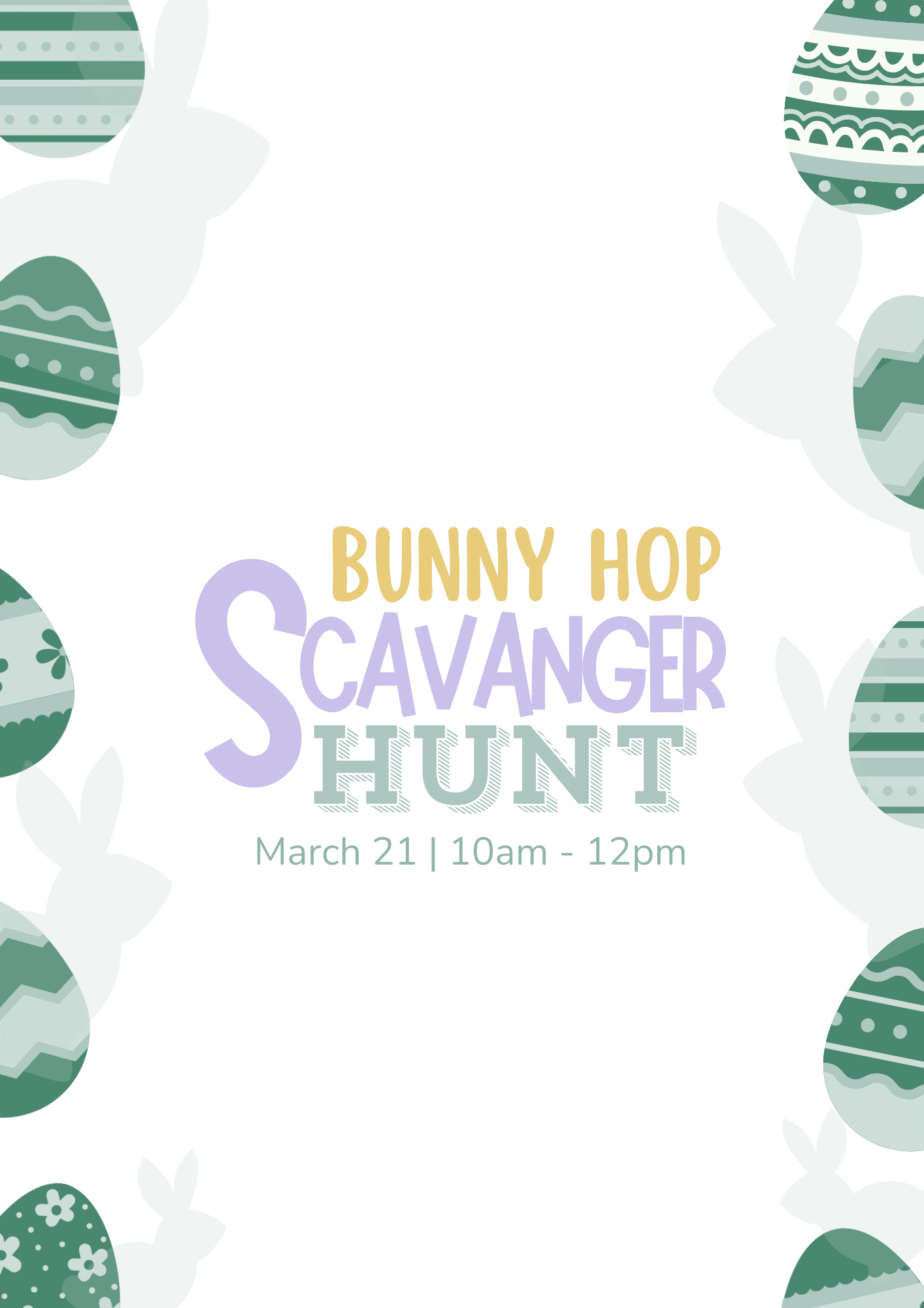Kids start at The Village, grab their bunny ears and scavenger card, and set off to solve clues around town. At each stop, they collect a sticker until their card is complete. Once finished, they hop back to The Village for an Easter egg and a fun craft activity.